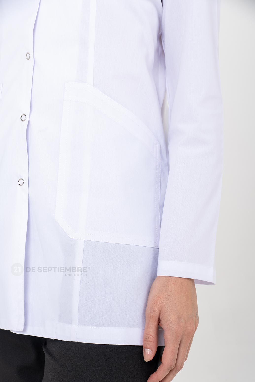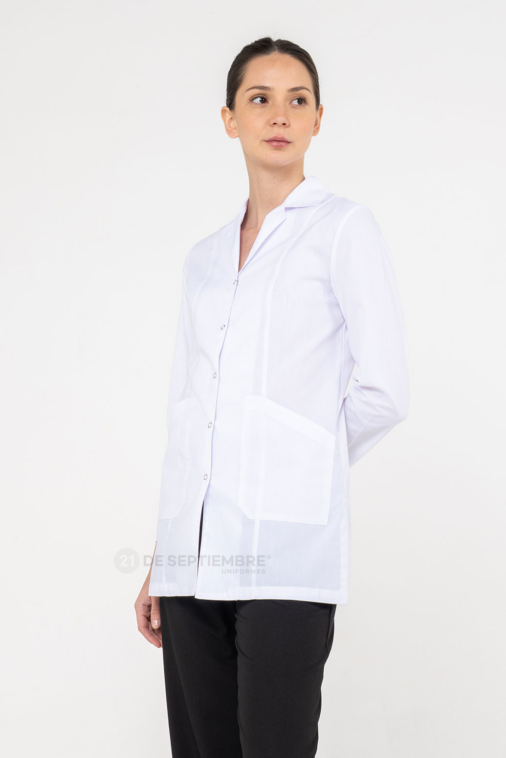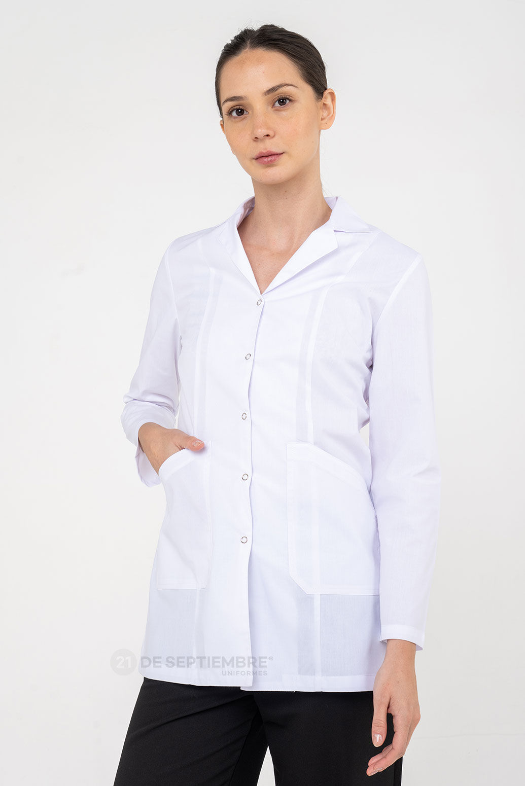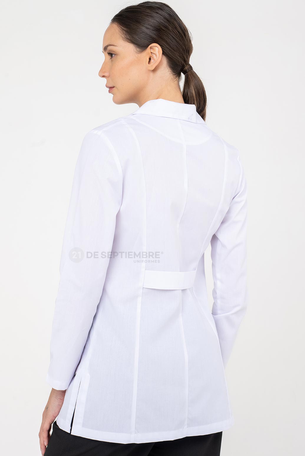 La Chaqueta Magna es una chaqueta larga de corte slim fit, diseñada para brindar una imagen femenina sin resignar comodidad. Confeccionada en tela Arciel, es liviana, respirable y resistente, ideal para jornadas largas.