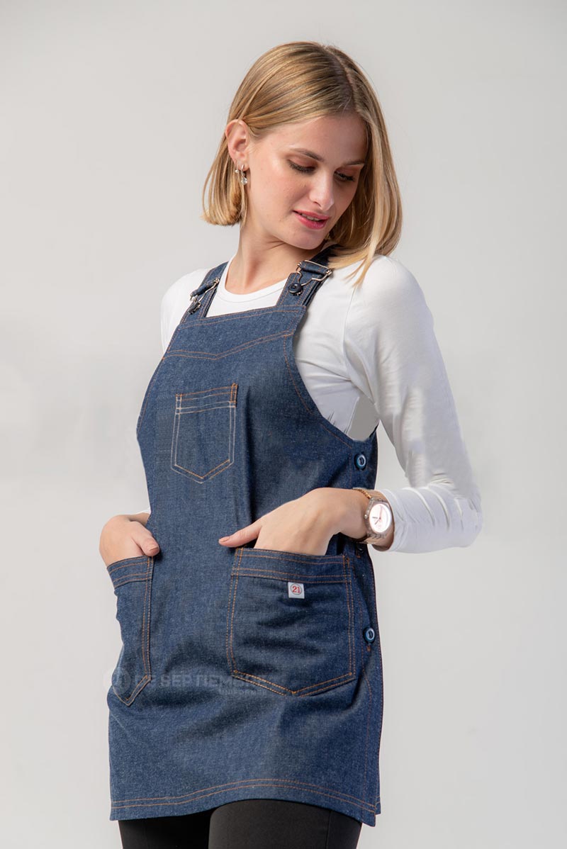 - Diseño jardinero clásico con abotonadura lateral.